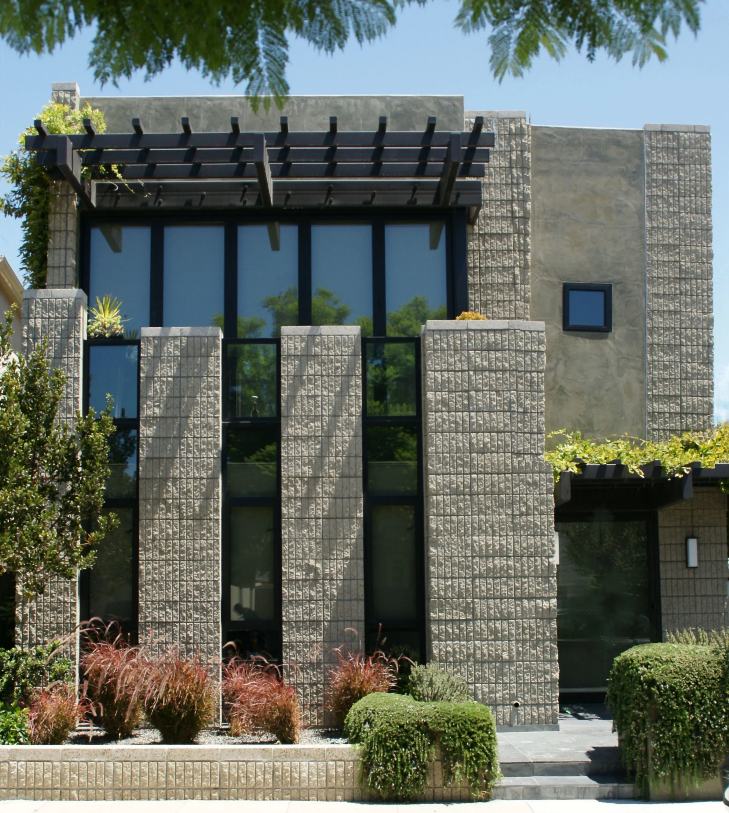 Inspired by FLWright's "Millard House" in Pasadena, CA {La Miniatura} this concrete block house sits on a 30' x 90' lot in Naples Island, California.